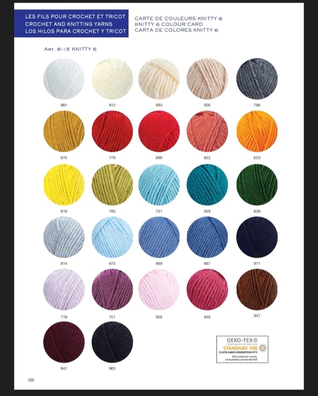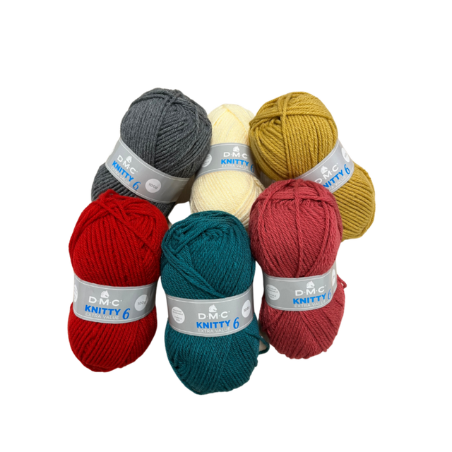 Knitty 6 DMC è un filato 100% acrilico di alta qualità. E' proposto in una gamma accattivante che comprende colori vivaci e tonalità neutre. Questo ottimo filato è ideale per confezionare capi di abbigliamento, accessori moda e decorazione casa. Gomitolo da 100 g, 137 metri, si lavora con ferri e uncinetto n° 6/6.5, lavabile in lavatrice con il programma per delicati.