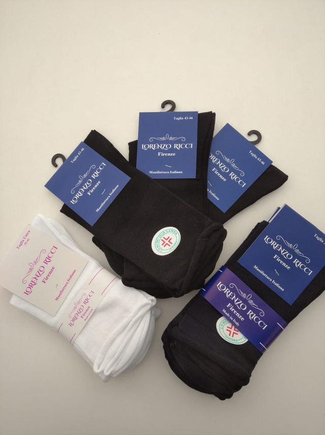 Lorenzo Ricci Firenze Calzino corto sanitario in filo di scozia Confezione tris 95% cotone 5% elastham Colore Bianco Nero Blu Taglia 35/40 - 39/42 - 43/46 Prodotto in Italia