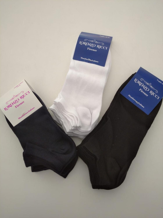 Lorenzo Ricci Firenze Calzino pariscarpa in cotone elasticizzato CONFEZIONE DA 5 PAIA Colore Bianco Nero Blu 95% cotone 5% elastham Taglia 35/40 - 39/42 - 43/46 Prodotto in Italia