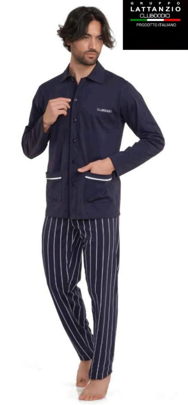 Pigiama da uomo aperto, comodo ed elegante in 100% cotone prodotto in Italia
